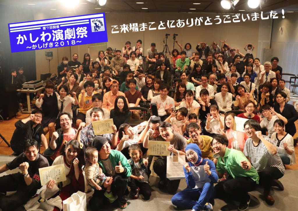 かしわ演劇祭〜かしげき2018〜全日程無事終了いたしました。ご来場くださった皆様、スタッフ、関係者の皆様、お手伝いしてくれた皆様、応援してくださった皆様、そのどれにも当てはまらない皆様、全ての方に心より御礼申し上げます。誠にありがとうございました!